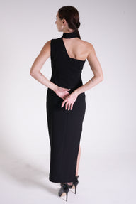 The one-shoulder silhouette exudes confidence, while the carefully adorned pearls add a touch of sophistication. In timeless black, this dress becomes a versatile canvas for expressing your unique style, transitioning effortlessly from day to night.