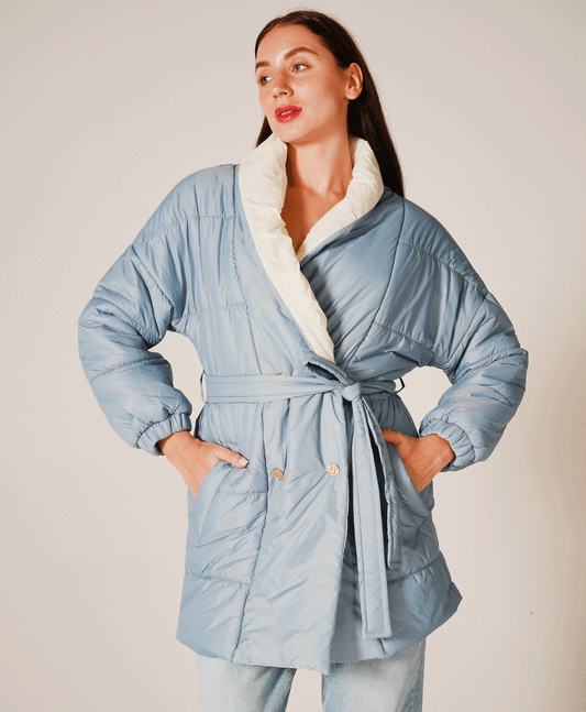 The puffer short coat with belt detail will keep you warm in cold weather and complete your style. This coat attracts attention with its functional and stylish design. The belt detail emphasizes the waist of the coat and provides a more elegant look. At the same time, you do not compromise on comfort while adding additional warmth to you. Thanks to its inflatable design, it protects you against cold weather conditions. You can wear this short coat for daily wear or for special events. It can be easily combined with shorts, trousers or skirts and always makes you look stylish. The puffer short coat with belt detail is an option that combines elegance and warmth.
