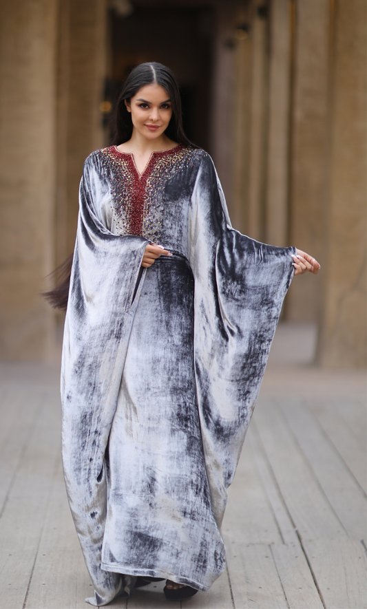 - Handmade with Precision: Each velvet caftan abaya is meticulously handcrafted with embroidery that tells a story of culture and tradition.